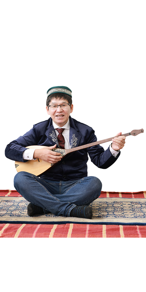 カザフスタンの民族楽器『ドンブラ』持参で現れたダルカンさん。弦は2本と作りはシンプルなのに、その音色はとても豊か。スローな曲もアップテンポも自由自在に操る。それもそのはず、ダルカンさんはミュージシャンを目指していた時期もあったという。「でも母が医者で、私にも医者になるよう勧めたんだよ」